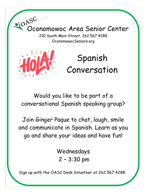 For more information about any activity, please call us at 262-567-4288.