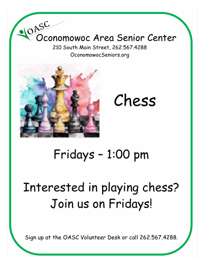 Pull up a chair and join our new Chess Club.  Enjoy relaxed, friendly matches, learn new strategies, and connect with others who love a good challenge. Come play, sharpen your skills, and be part of a fun, supportive group that welcomes all levels.