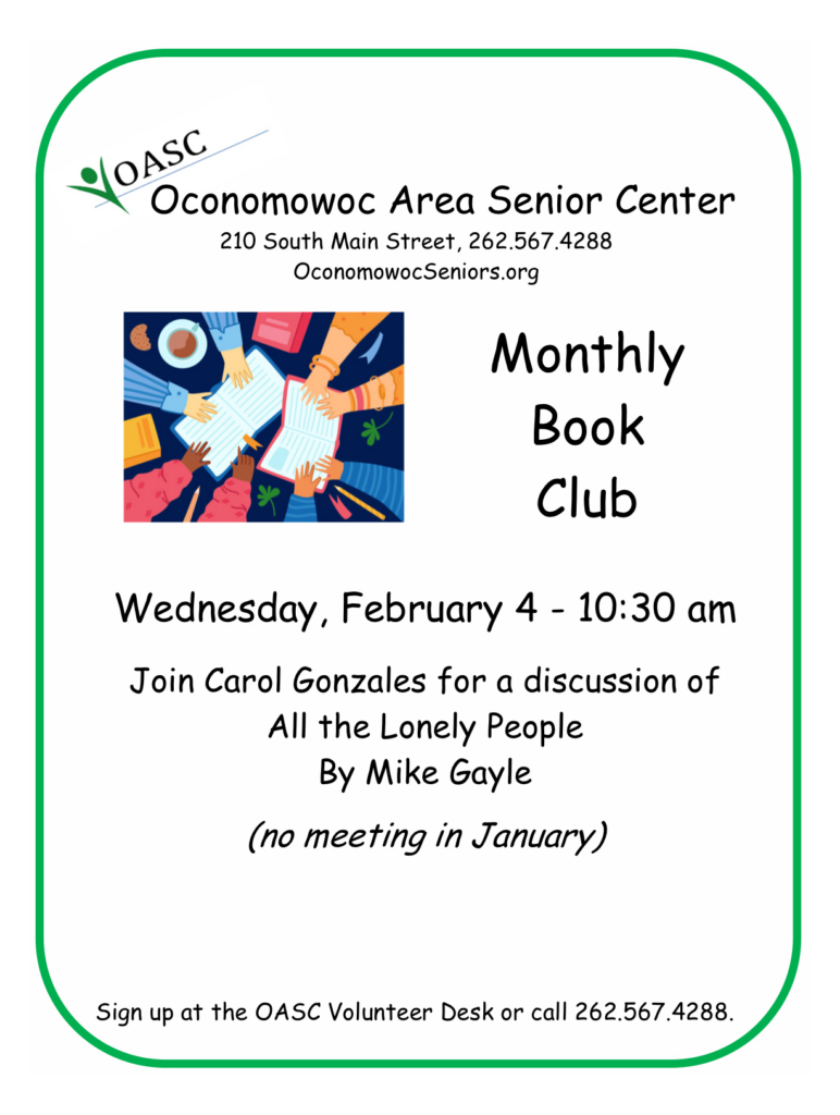 The OASC Monthly Book Club selects its titles by drawing from participant suggestions. Every meeting features a round-the-table discussion where everyone’s thoughts and insights are welcome. Topics cover many subjects and there’s something for every reader to enjoy!