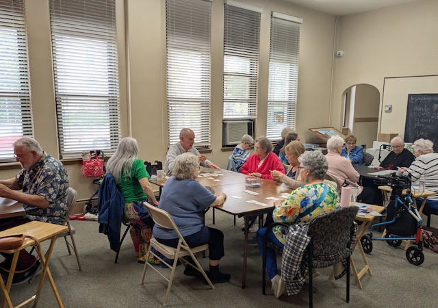 Playing games improves our memory, reduces stress, and connects us in a fun and healthy opportunity. Click below to see more details on our card games, board games, dice games, bingo, and active games like bags or dartball.
