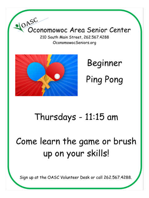 For information on any of the PROGRAMS please call OASC 262-567-4288.