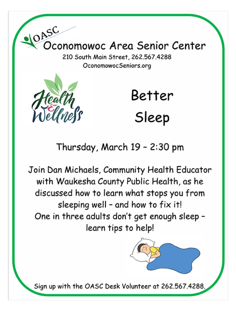 Our Health and Wellness presentations are held on the third Thursday of the month at 2:30. The series covers a wide range of topics related to physical, mental, and emotional well-being.